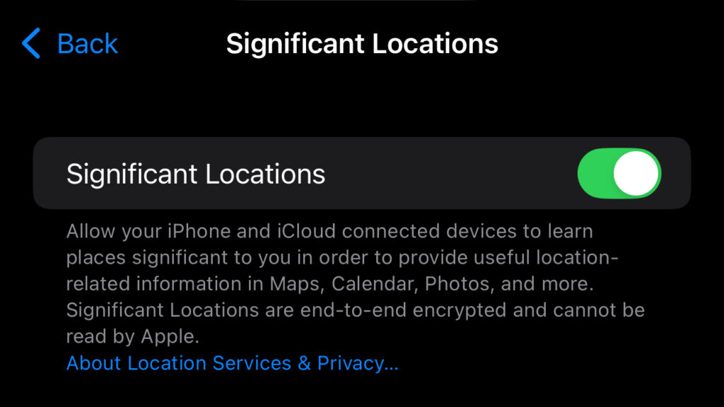 Fortunately for those of you who are worried, you can shut this option off. From the existing screen just select the “Clear History” button, and then toggle the “Frequent Locations” option to the left.